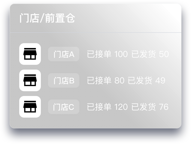 迅速聚合美团、饿了么、京东到家等订单信息,分发至相应的实体门店或前置仓,依托数字化将线下商家和线上需求形成链接,满足消费者全天候的购买需求。